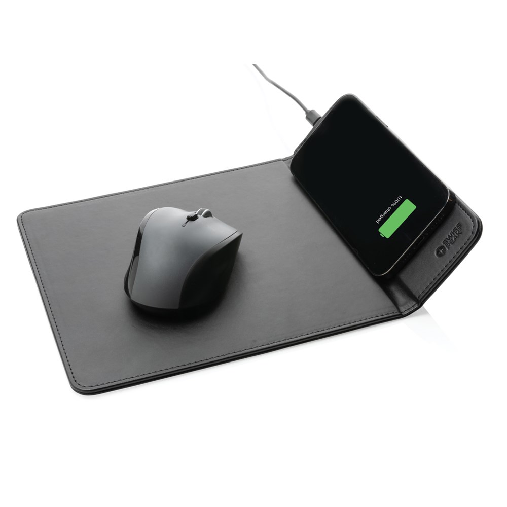 Schickes Mauspad mit integriertem kabellosem 10W-Ladegerät. Die Ladefläche kann in aufrechter Position auch als Telefonständer verwendet werden. Hergestellt aus RCS (Recycled Claim Standard)-zertifiziert recycelten Materialien. Die RCS-Zertifizierung gewährleistet eine vollständig zertifizierte Lieferkette der recycelten Materialien. Die glatte und luxuriöse Oberfläche wertet jeden Schreibtisch zu einer großartigen Arbeitsumgebung auf. Größe: 29 x 19 x 2 cm. Extra dick für ein perfektes Arbeitserlebnis. Außenmaterial aus RCS zertifiziert recyceltem PU. Gesamter Recyclinganteil: 27% bezogen auf das Gesamtgewicht des Artikels. Mit 150cm langem Kabel aus PVC-freiem TPE-Material. Artikel und Zubehör PVC-frei. Kabelloses Aufladen kompatibel mit Android der neuesten Generation, iPhone 8 und höher. Input: 9V/2A; Wireless Ouput: 9V/1,1A.