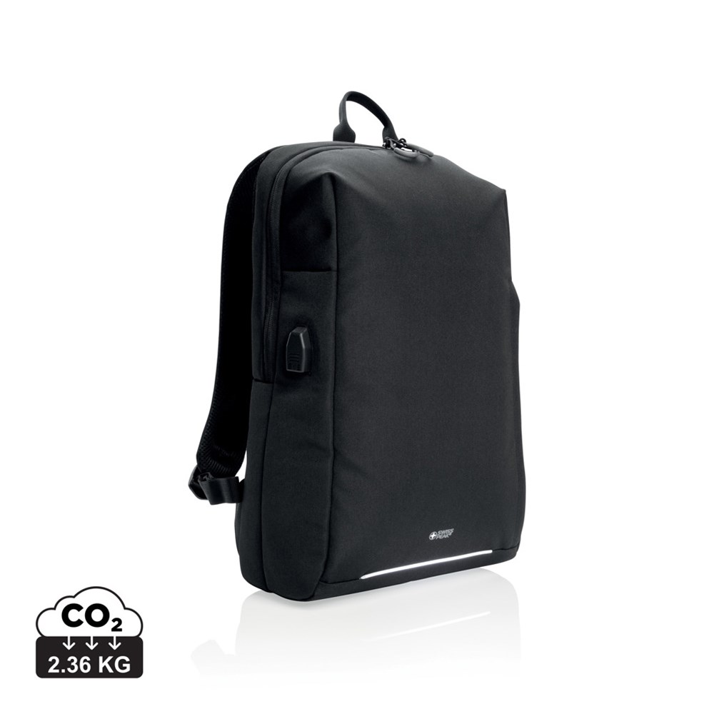 Dieser stilvolle Handgepäck-Laptop-Rucksack ist für Geschäfts- und Urlaubsreisen gedacht. Er hat ein gepolstertes 15,6" Laptopfach sowie einen Trolley-Gurt und einen USB A-Ausgang. Zudem findet sich ein seitliches Schnellzugriffsfach mit RFID-Schutz ( NFC 13,56 MHz blockierend). Die Vorderseite ist mit reflektierenden Sicherheitsstreifen versehen. PVC-frei. Mit AWARE™ Tracer, der die tatsächliche Verwendung von recycelten Materialien bestätigt. Zudem werden 2% des Erlöses jedes verkauften Aware™-Produkts an Water.org gespendet.