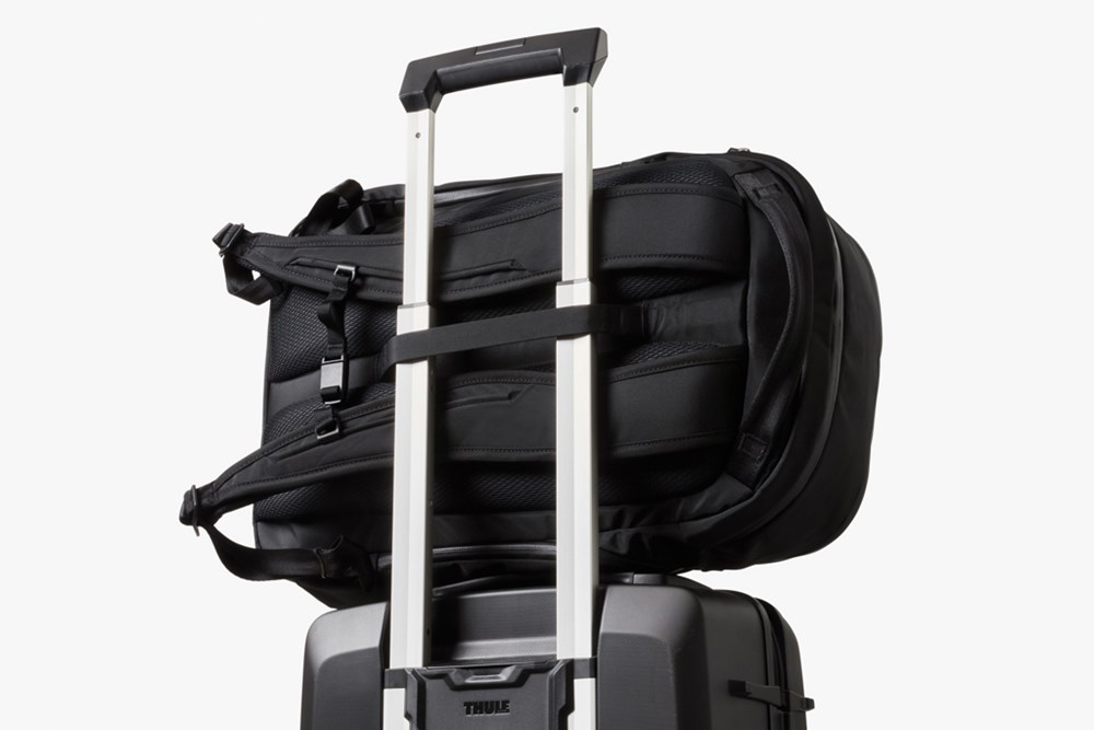 Ein Rucksack mit extra viel Fassungsvermögen, der sich für lange Pendelstrecken, Abenteuerreisen und Geschäftsreisen eignet. Schnellzugriffsfach für 16"-Laptop für einfache Flughafenkontrollen. Von außen zugängliche Taschen bieten unsichtbaren Stauraum für Reisepass, Brieftasche, Wasserflasche und mehr. Vordertasche mit Schlüsselclip. Weich gefüttertes Sonnenbrillenfach.Gepolsterte Schultergurte, konturiertes Rückenteil und Brustgurt für hohen Tragekomfort. Interne Kompressionsriemen zur Verringerung des Volumens und um die Dinge an ihrem Platz zu halten. Internes Apple AirTag-Fach.