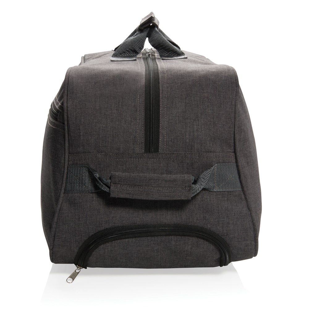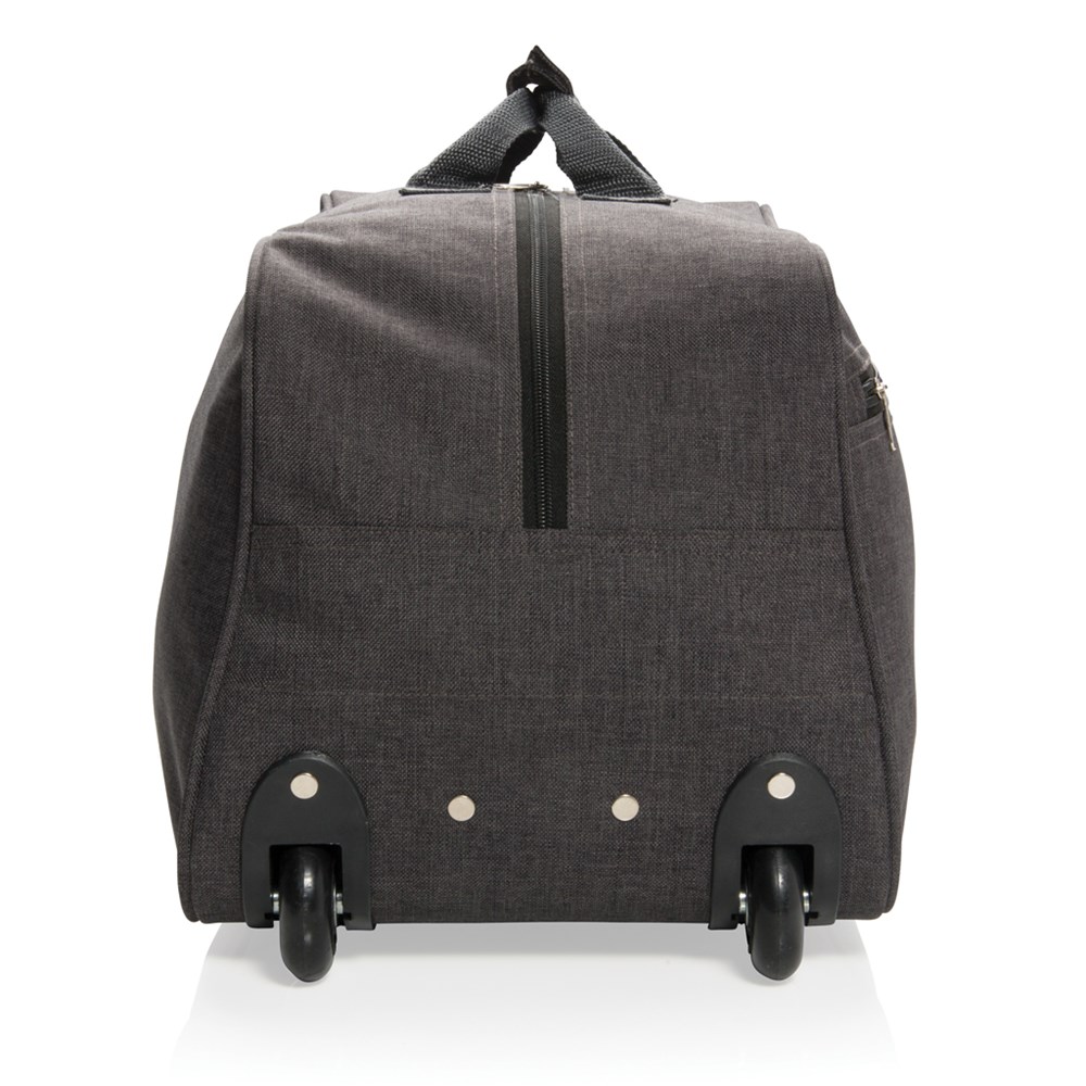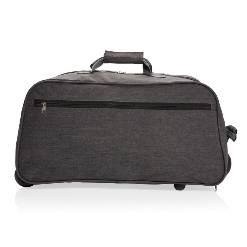 Wochenendtasche aus 600D Polyester mit ausziehbarem Trolley-System. Eine Fronttasche und ein großes Hauptfach.