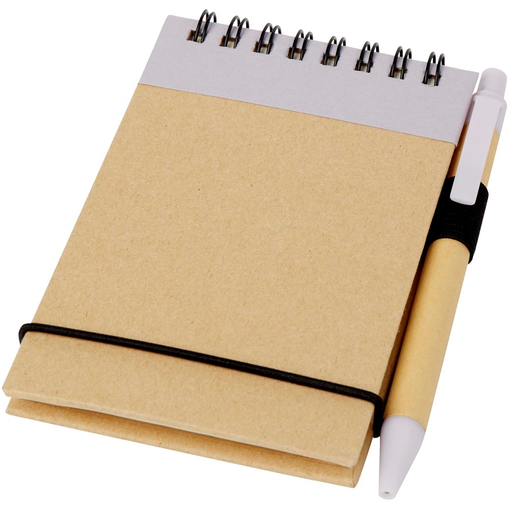 Mit dem Zuse Recycling-Notizblock mit farblich passendem Stift lassen sich schnell Ideen notieren. Der kleine Notizblock enthält 60 linierte Blätter aus A7 Recyclingpapier, passt also in jede kleine oder große Tasche, liegt gut in der Hand und ist vor allem nachhaltig. Verschiedene Druckoptionen stehen zur Verfügung, um ein beliebiges Logo auf der Außenseite des Hardcovers anzubringen.