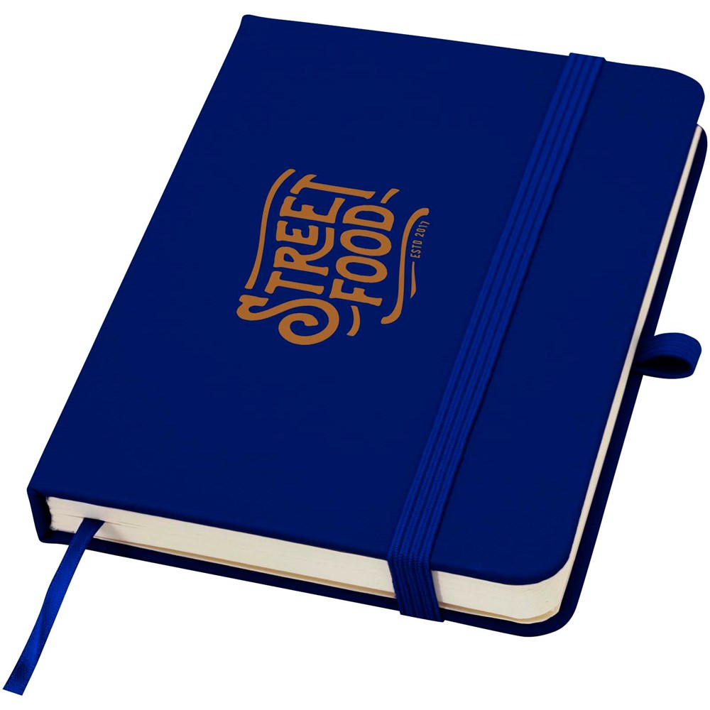 Das Spectrum Plus A6 Hardcover Notizbuch mit abgerundeten Ecken ist nicht nur ein unentbehrlicher Begleiter im Büro, sondern auch ein hervorragender Weg, um für Ihre Marke zu werben. Das Notizbuch aus Karton mit weichem Einband und 80 linierten, cremefarbenen Seiten (70 g/m²) eignet sich ideal für schnelle Ideen oder längere Notizen. Das Notizbuch ist mit Stiftschlaufe, elastischem Verschluss, Lesebändchen und erweiterbarer Tasche ausgestattet.