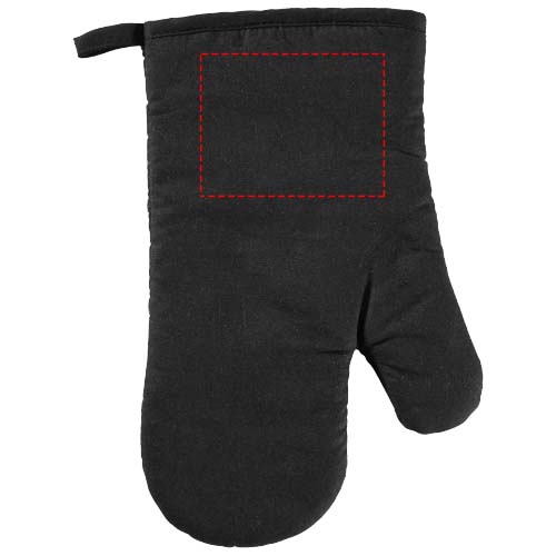 Eine Seite mit Rautenmuster, die andere Seite ist zur Dekoration schlicht gehalten. Die Handschuhöffnung beträgt 13 cm.