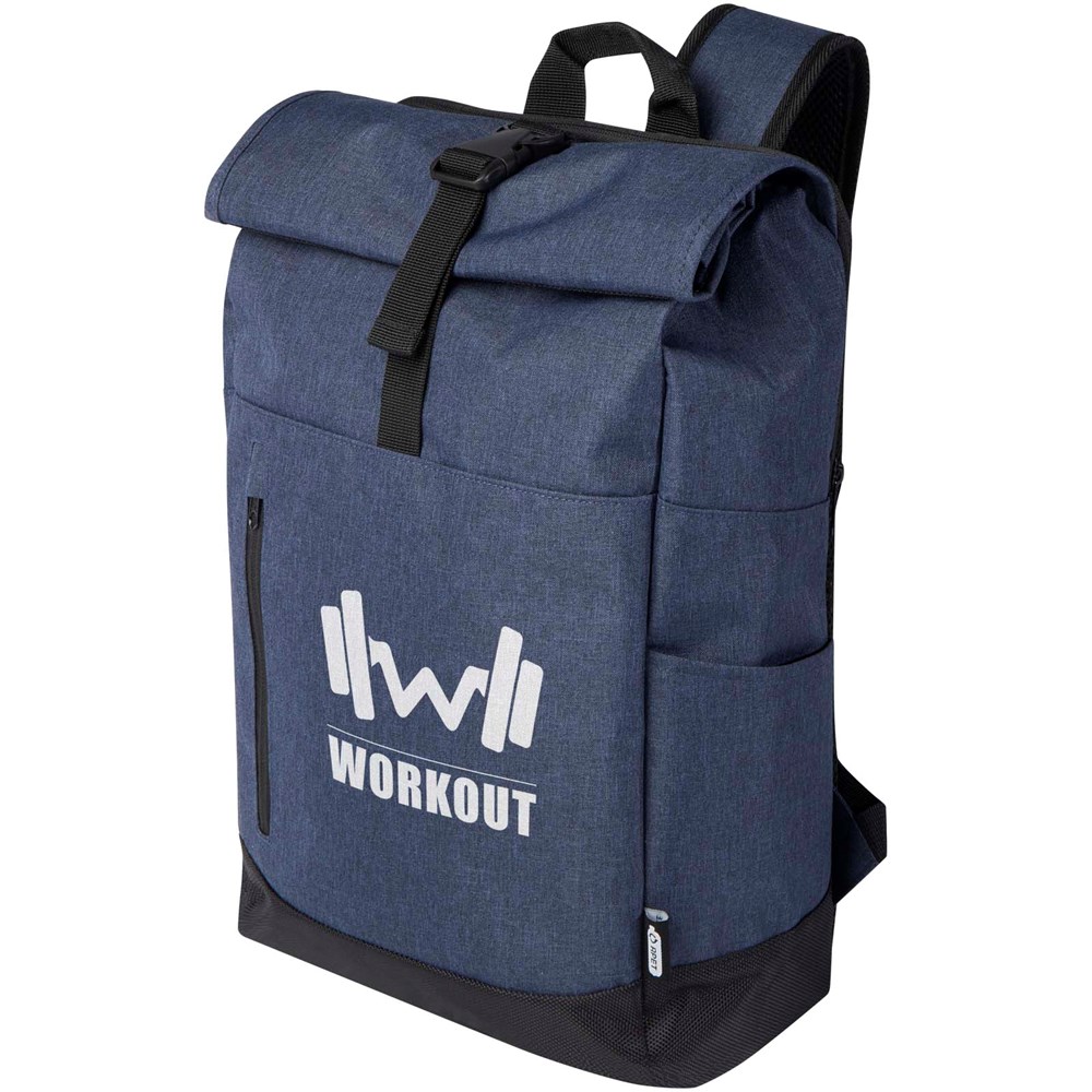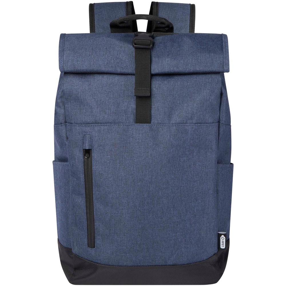 15,6" Laptop-Rucksack mit gepolstertem Laptopfach, gepolsterten verstellbaren Schultergurten, Hauptfach mit Reißverschluss mit Rolltop-Verschluss, 2 Tragegriffen und Fronttasche mit Reißverschluss.