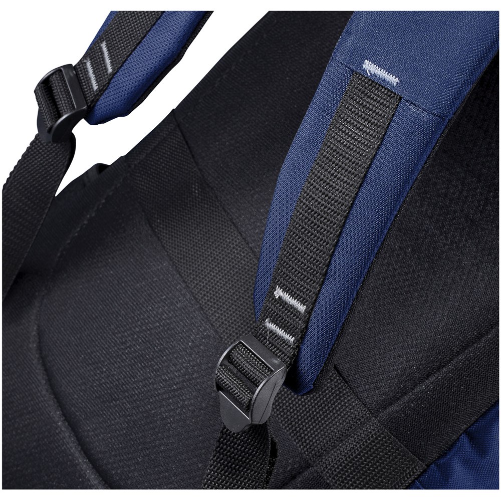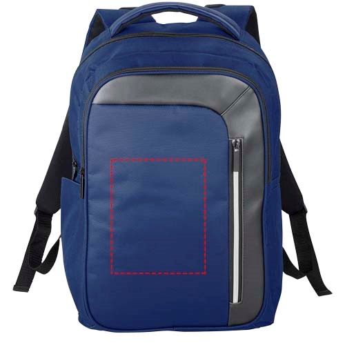 Eleganter, moderner 15" Laptoprucksack bietet eine große Tasche auf der Vorderseite mit Reißverschluss, Schlüsselanhänger und versteckte RFID-Block Technologie für Ihre Karten und Reisepass, um vor Identitätsdiebstahl zu schützen. Das große Reißverschluss Haupfach ist für ein 15" Laptop und bietet ein separates gepolstertes Fach für IPad oder Tablet. Der vordere vertikale Reißverschluss soll Ihnen einen schnellen Zugriff auf die Vordertasche geben. 2 zusätzliche Seitentaschen bieten weiteren Stauraum und die verstellbaren, gepolsterten Schultergurte mit Gewebedetails sind bequem und erlauben Ihnen weitere Reiseutensilien anzuclippen. Der Tragegriff und die Trolley Befestigung machen das Reisen einfach. Es kann zu geringfügigen Farbveränderungen des eigentlichen Produkts kommen, die auf die Beschaffenheit der Gewebefarbstoffe, Gewebe und Drucke zurückzuführen sind.