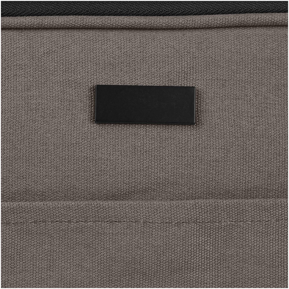 Die Joey 14" Laptophülle besteht aus GRS recyceltem Canvas und GRS RPET-Futter, und verfügt über ein geschütztes Laptopfach und eine offene Vordertasche mit Klettverschluss. Die dekorative Metallplatte kann ein Logo durch ihre dezente und matte Oberfläche zum Leuchten bringen.