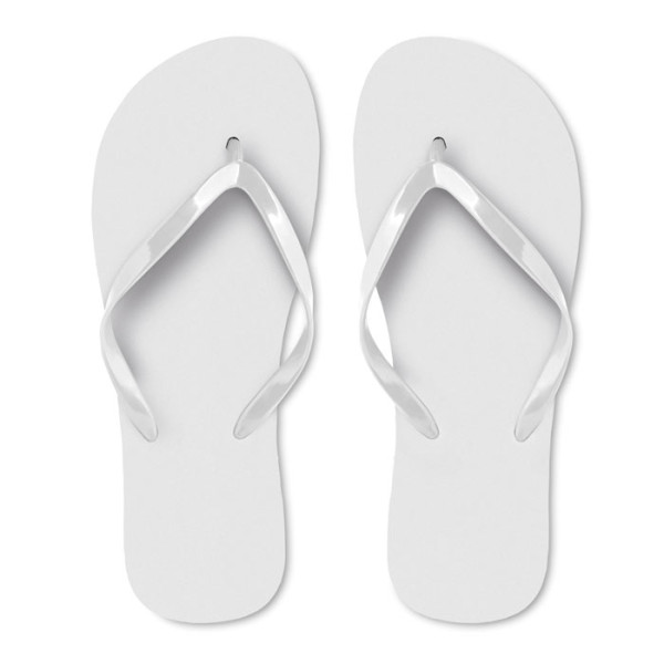 Zehensandalen mit Sohle aus Polyethylen und Riemchen aus PVC. Erhältlich in 2 Größen, M entspricht 36-39 / L entspricht 40-43.