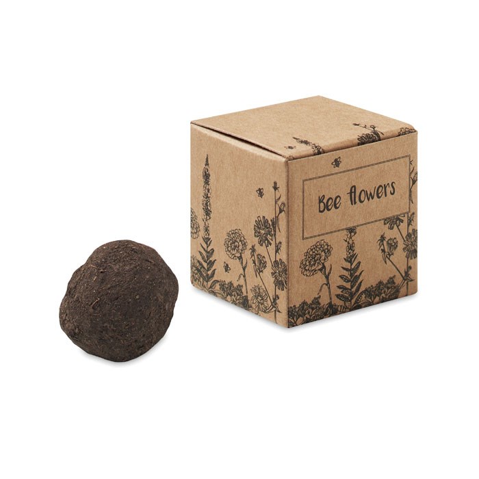 Saatbombe mit Bienenblumen-Samen. Lieferung im Karton. Hergestellt in der EU.