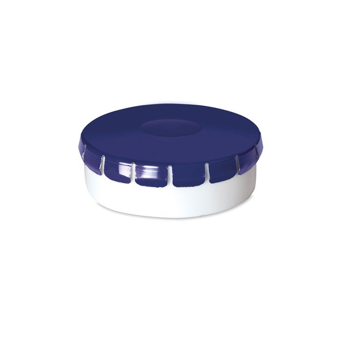 12 g zuckerfreie Pfefferminzbonbons im Kunststoffbehälter mit Zinndeckel und Boden aus Kunststoff. Leichtes Öffnen durch Drücken.