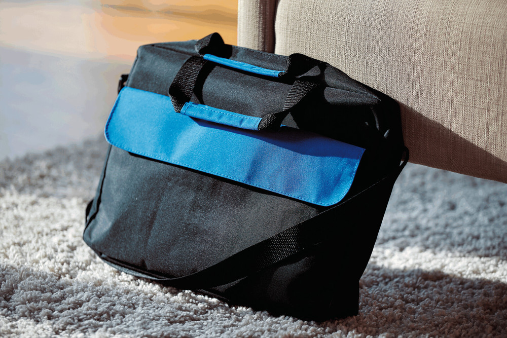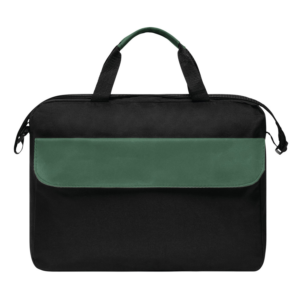 Dokumententasche BRISTOL: Klettverschluss-Vorfach mit farblich abgesetztem Umschlag, geräumiges Reißverschluss-Hauptfach, 2 verstärkte und farblich abgesetzte Tragegriffe, verstellbarer Schultergurt