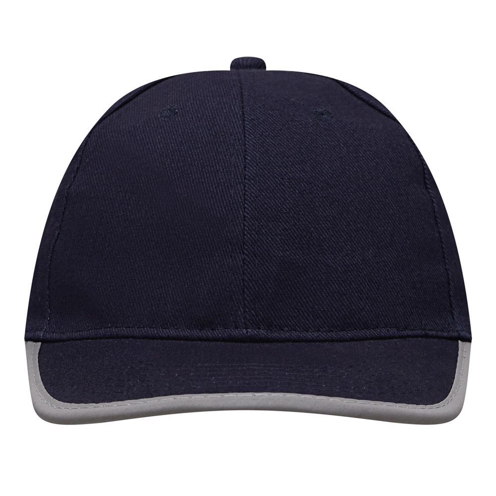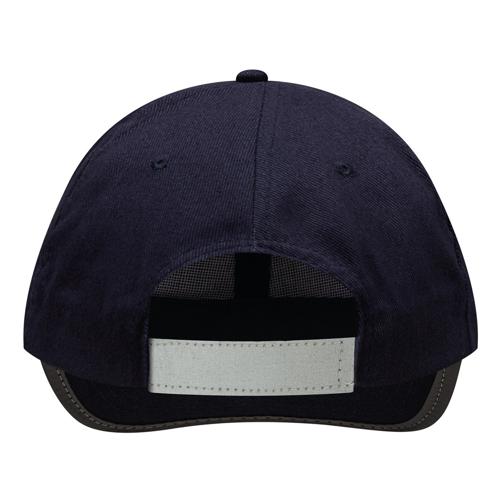 6-Panel-Baseball-Cap DETECTION: mit reflektierendem Band an Schirm und hinten auf dem Klettverschluss, verstärkte Frontsegmente, 6 gestickte Luftlöcher, Knopf, 100% Baumwolle (heavy-brushed)