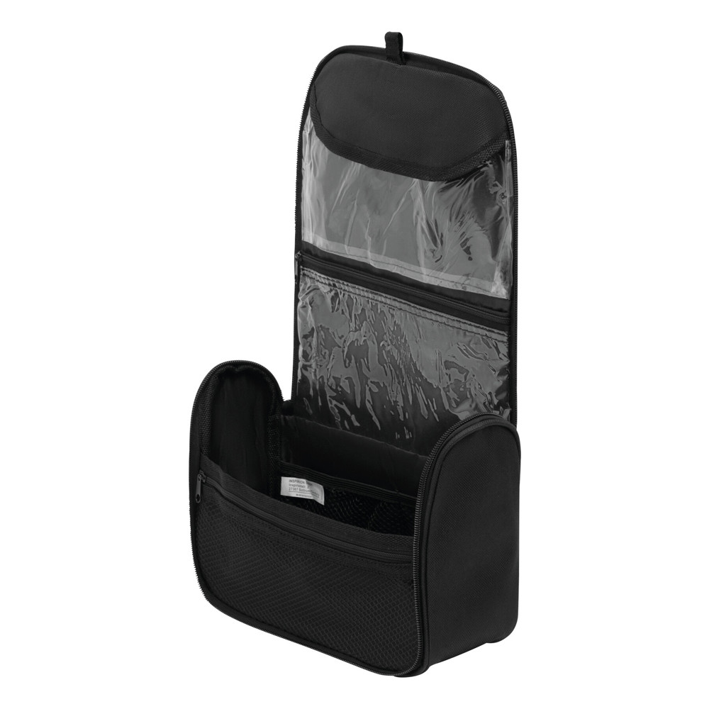 Kosmetiktasche WIDE AWAKE: mit Tragegriff und Reißverschluss-Hauptfach, innen 2 transparente Fächer, 3 Netzfächer und Metallhaken zum Aufhängen
