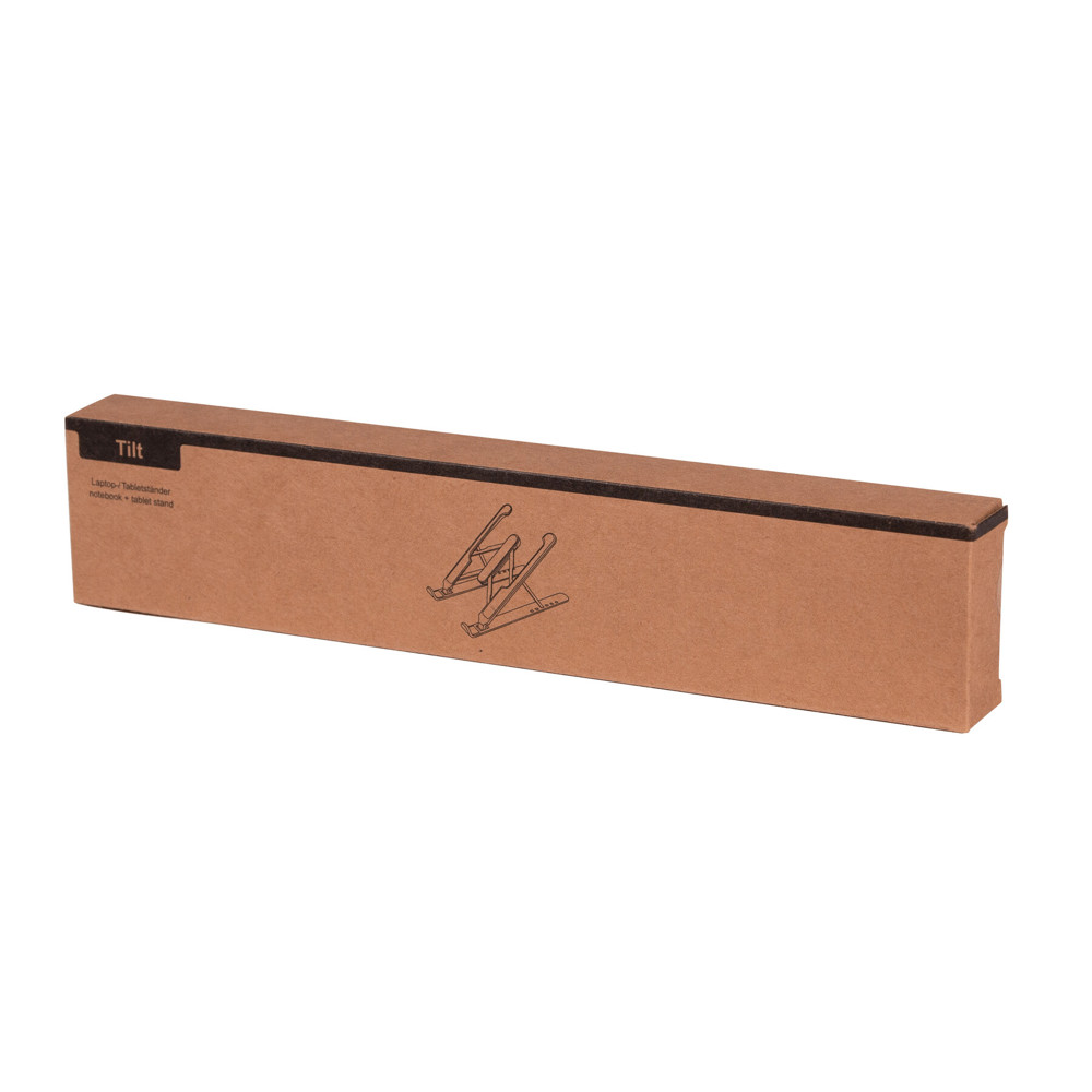 Faltbarer Laptop-/ Tablet-Halter TILT: rutschhemmende Beschichtung auf der Laptop-/ Tablet-Auflage und unter dem Halter, perfekte Einstellung der optimalen Position durch 6 verschiedene Neigungswinkel, offenes und nach vorne geneigets Design sorgt für optimale Wärme- und Luftableitung, in Box