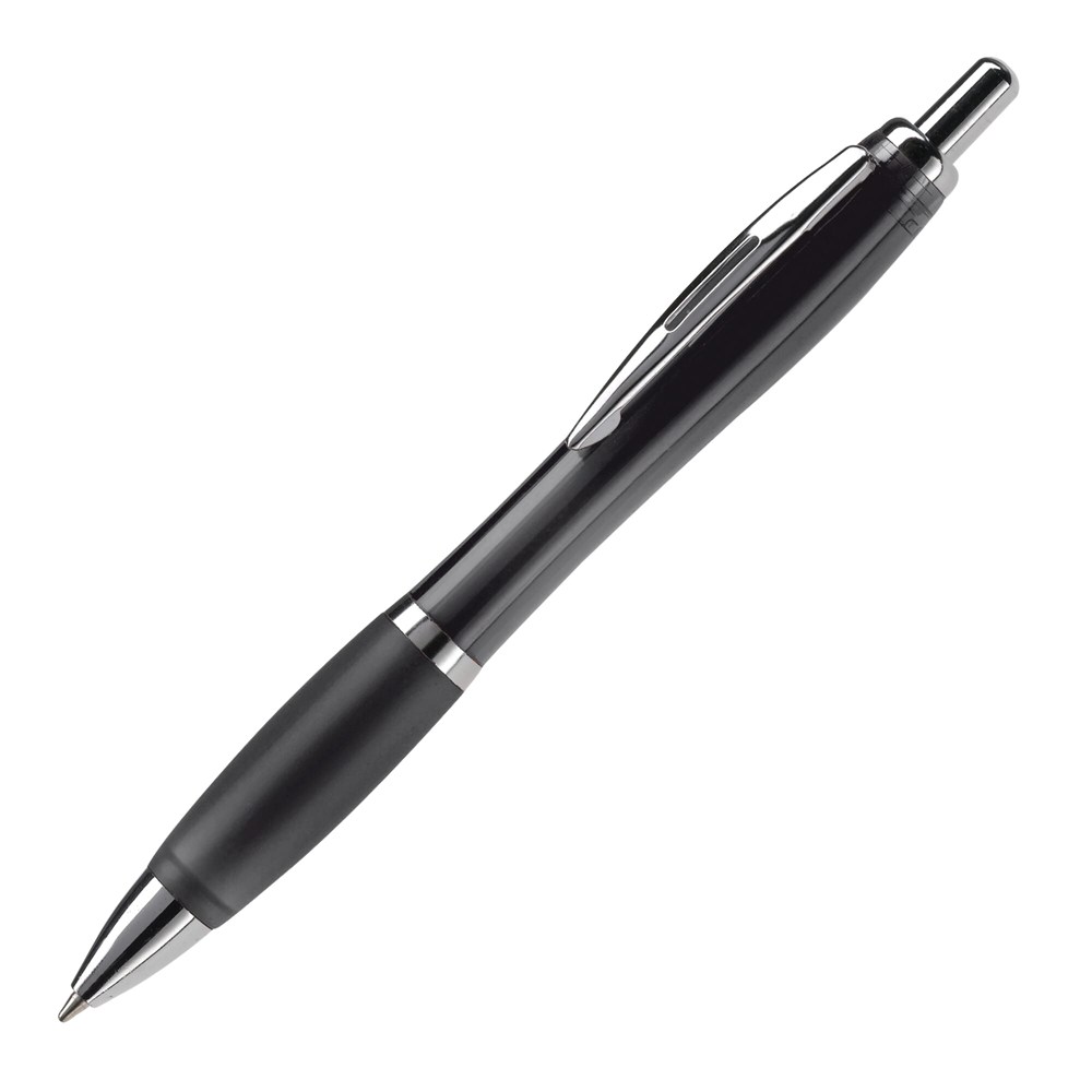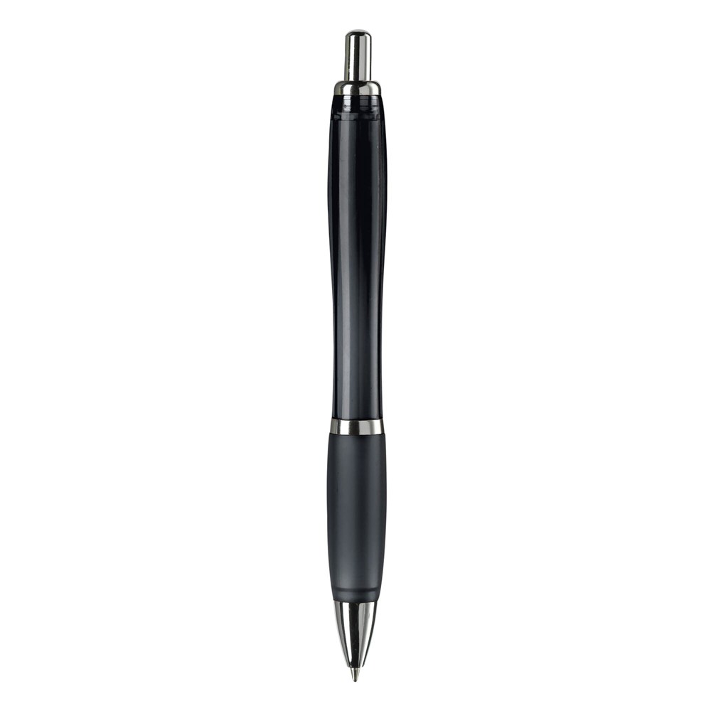Stilvoller transparenter Kugelschreiber mit Metallclip, Drücker, Zwischenring und Spitze. Blauschreibende Jumbo-Mine mit langer Schreibleistung. Ab 10.000 Stück in weiteren Farben erhältlich. Fragen Sie nach den Möglichkeiten.