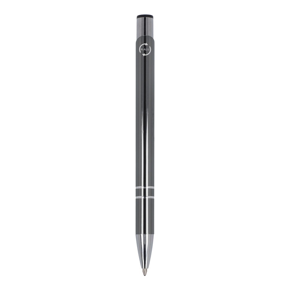 Die aus recyceltem Aluminium gefertigte Version unseres beliebten Alicante-Kugelschreibers mit glänzender Oberfläche; ein eleganter Aluminium-Kugelschreiber mit zwei Ringen im Korpus, die ihm eine besondere Note verleihen. Der Stift wird mit schwarzer Schreibtinte geliefert.