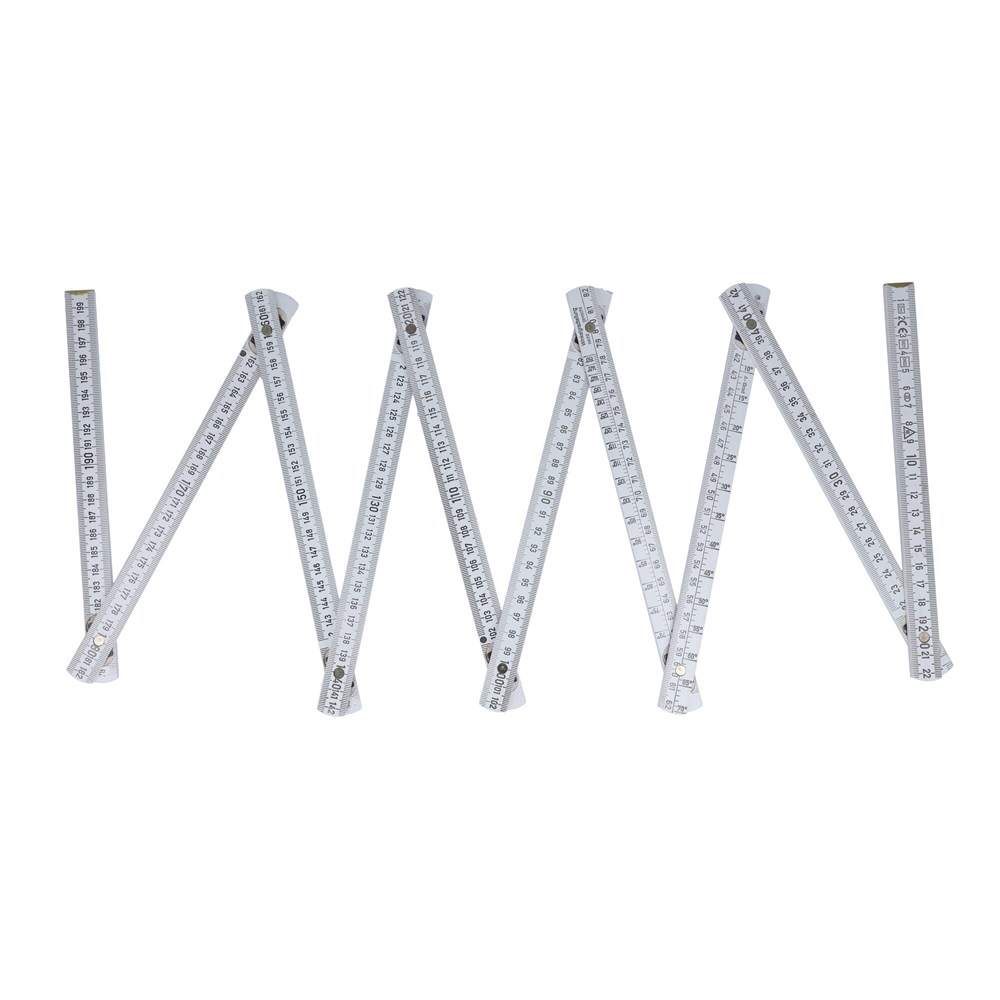 Profi Zollstock mit einer Gesamtlänge von 2 Metern. Langlebig und handlich, ideal für professionelle und Heimwerker-Projekte. Der Zollstock hat eine stoßfeste Beschichtung und extra starke Scharniere aus rostfreiem Stahl. Die Zollstöcke aus Buchenholz haben ein Rasterungswinkel von 180° grad und innenliegende durchgenietete Gelenkfedern. Duplex skaliert, CE-Zertifiziert und EU-Produktion.