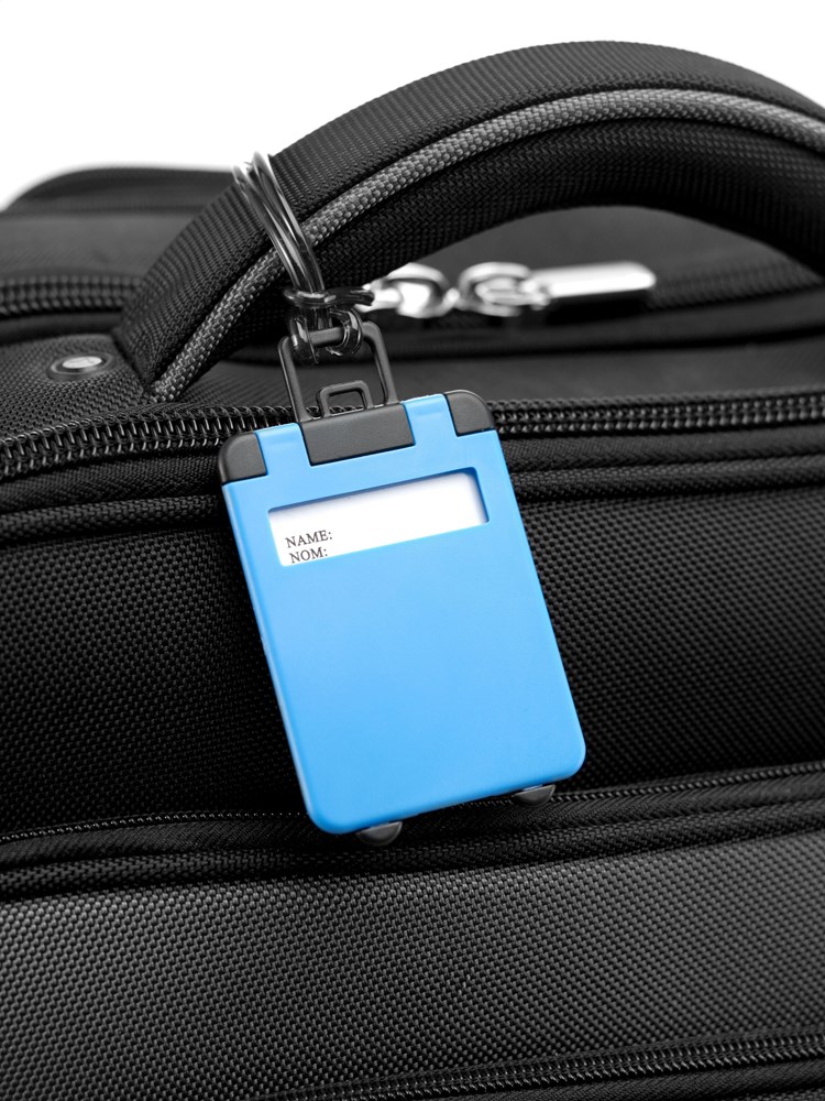 Kofferanhänger aus Kunststoff, mit flexiblem Befestigungsband. mehr