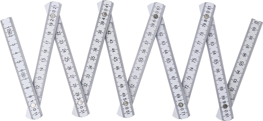 Zollstock aus Kunststoff, faltbar, Gesamtlänge: 1 Meter. Skalierung ist nur auf einer Seite des Artikels bedruckt.