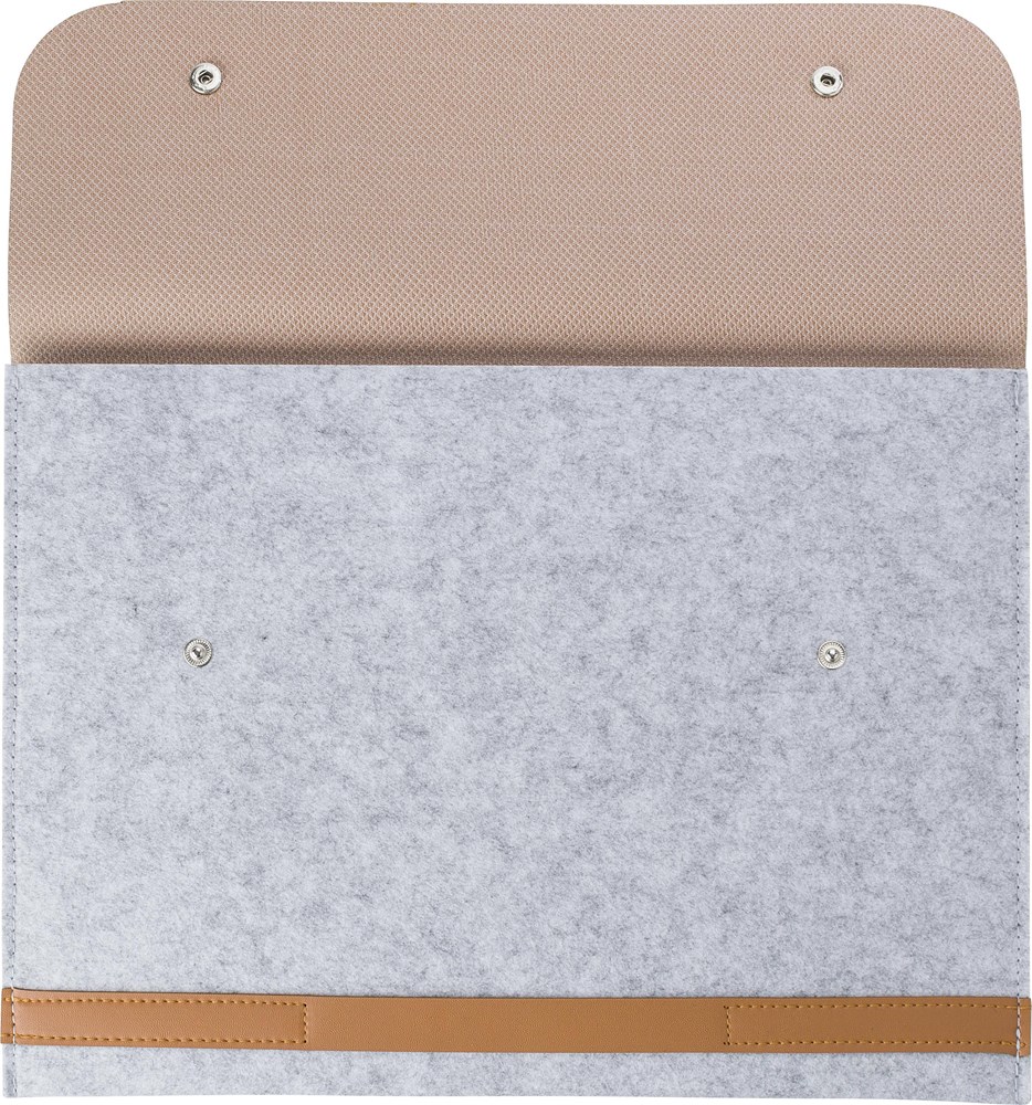 Laptop-Tasche aus rPET-Filz (14 Zoll) mit PU-Details. Schließt mit zwei Knöpfen.