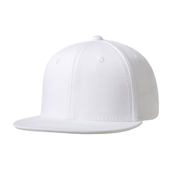 6 panel Baby Cap mit Frontfütterung. Flat visor. Plastik Verschluss. Ausgeführt in cotton twill