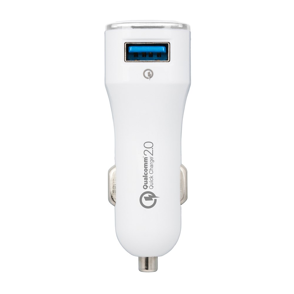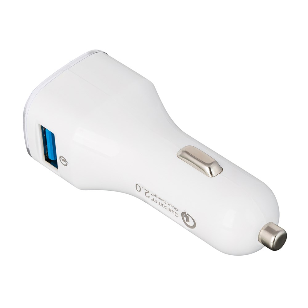 Dieser Quick charge 2.0-Autoladeadapter hilft, wenn der Akku unterwegs schnell aufgeladen werden muss. Voraussetzung: Ihr Handy ist schnellaufladefähig! Wenn nicht, lädt der Adapter Ihr Gerät dennoch in Standardgeschwindigkeit auf. Output bei zwei Ausgängen - Standardausgang USB DC 5V/1,6A und Quick charge 2.0 mit bis zu DC 5V/2,4A; DC9V/1,7A; DC 12V/1,2 A in Abhängigkeit vom zu ladenden Gerät. Das integrierte Schutzsystem bewahrt vor Überspannung, Überhitzung und Kurzschluss. Der umlaufende Farbring an der Werbefläche wird per LED hinterleuchtet.