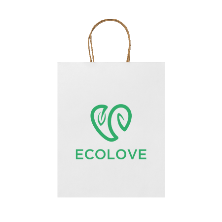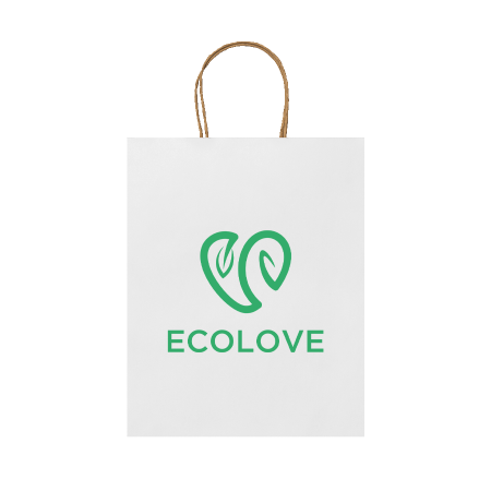 Papiertasche in Weiß und Ecru mit gedrehten Henkeln in der Farbe der Tasche, 240x120x310 mm, 90 g/m2.