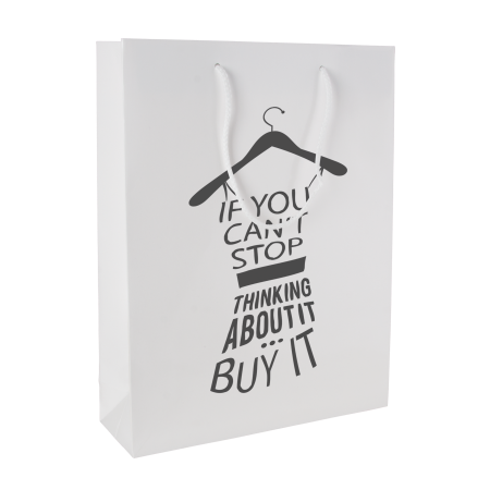 Glänzend laminierte Papiertasche (400x120x360 mm) mit Kordelgriffen in der Farbe Weiß, 170 g/m2. mehr