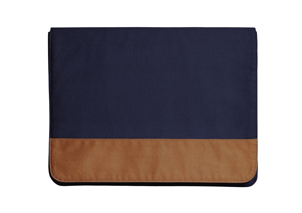 moderne, aufwändig verarbeitete Notebook-Hülle; liebevoll gestaltet mit beschichtetem Baumwoll-Besatz; geeignet für Notebook und DIN A4-Unterlagen; zwei flache Einsteckfächer auf der Front; Reißverschluss-Fach im Überschlag innen; großes Reißverschluss-Fach rückseitig; Magnet-Verschluss