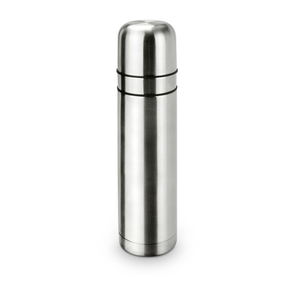 Elegante Isolierkanne, Edelstahl in klarer Form, Drehverschluss mit Drucköffnung, Deckel mit clever integriertem Zweitbecher, 750 ml (Edelstahl - seidenmatt gebürstet, Kunststoff)