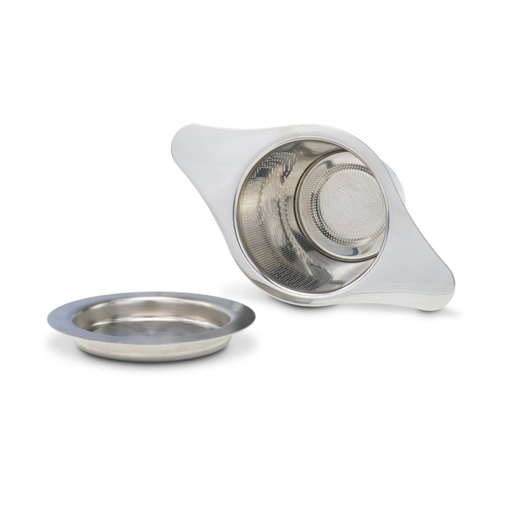 Großzügiges Teesieb zur Zubereitung von losem Tee direkt in der Tasse, geeignet für sämtliche Teesorten dank extra feinmaschigem Design aus modernem und rostfreiem Edelstahl, trennt die Blätter und Kräuter nach dem Aufguss sauber vom Wasser, breite, flache Henkel für einen sicheren Halt auf dem Tassenrand, inklusive Deckel für gleichbleibende Aufgusstemperatur, der auch als Abtropfschale für sauberes Abstellen nach dem Ziehen genutzt werden kann (Edelstahl)