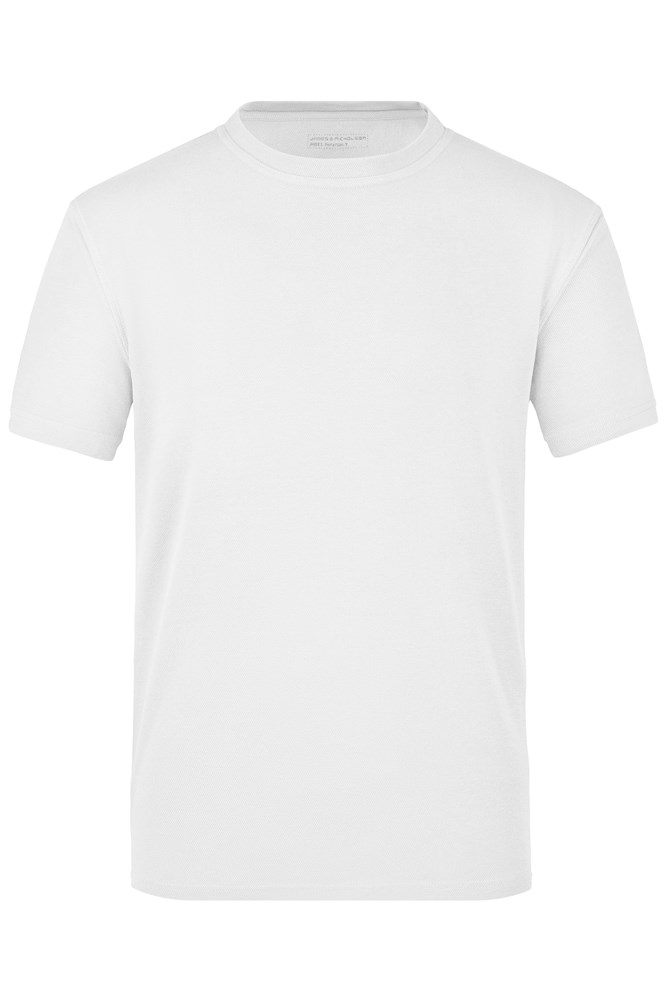 Doppelflächiger Struktur-Jersey Innenseite aus Polyester-5-Kanal-Faser Außenseite aus Baumwolle Hoher Tragekomfort, atmungsaktiv und schnell trocknend Doppelnähte an Schulter, Hals- und Armausschnitt, Necktape 1/2 Oberweite: 48 cm 1/2 Saumweite: 48 cm Länge ab Schulter: 70 cm Ärmel Länge: 21 cm CoolDry® Baumwolle/Synthetik Atmungsaktiv Rundhals