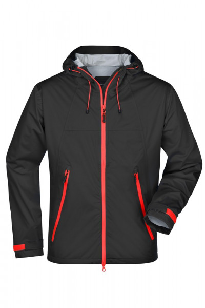 Funktionsmaterial mit TPU-Membran Wind- und wasserdicht (10.000 mm Wassersäule) Atmungsaktiv und wasserdampfdurchlässig (5.000 g/m²/24h) Versiegelte Nähte, wasserdichte Reißverschlüsse 2-Wege-Reißverschluss 2 Seitentaschen mit Reißverschluss Mehrfach verstellbare Kapuze Ergonomische Passform, verlängertes Rückenteil JN1097: Leicht tailliert 1/2 Oberweite: 54 cm 1/2 Saumweite: 51 cm Länge ab Schulter Vorderteil: 69 cm Länge ab Schulter Rückenteil: 72 cm Ärmel Länge: 65 cm Softshell Atmungsaktiv-Wasserdampfdurchlässig Wassersäule ab 1.500 mm Wassersäule ab 2.000 mm Wassersäule ab 3.000 mm Wassersäule ab 5.000 mm Wassersäule ab 8.000 mm Wind & Wasserabweisend Nähte versiegelt Reißverschluss: Wasserdicht Reißverschluss 2-Wege Kapuze Verschluss: Klett
