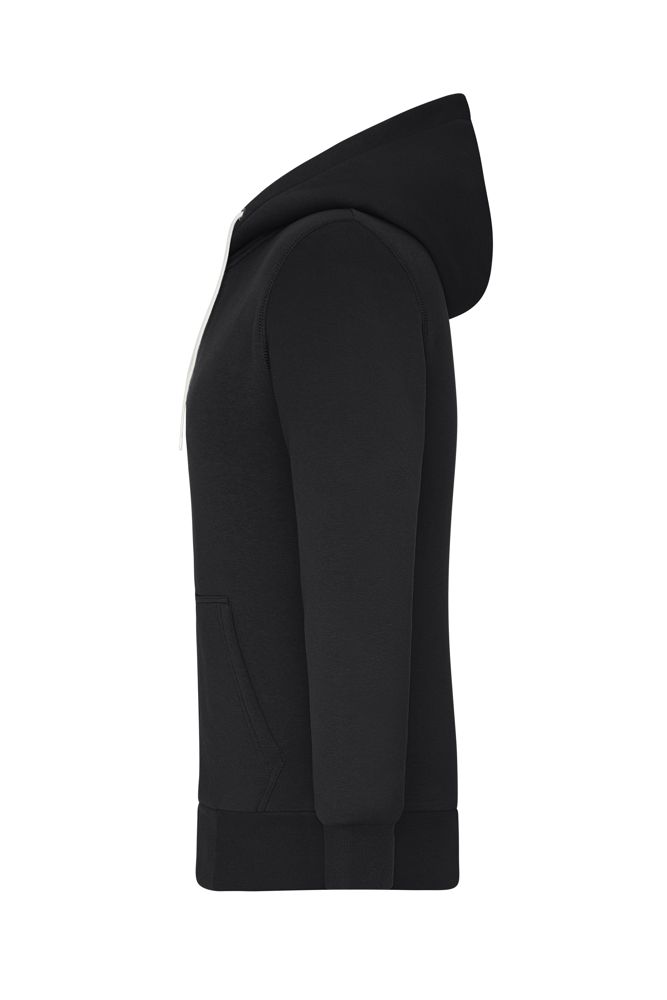 Hochwertige Sweat-Qualität aus 85% gekämmter und ringgesponnener BIO-Baumwolle Jacke ist komplett gefüttert, Sherpa-Futter aus 100% recyceltem Polyester Kapuze mit Kordelzug, Reißverschluss in Kontrastfarbe Kängurutasche Bündchen mit Elasthan Veredelungsreißverschluss im Rückenteil Reißverschlüsse: YKK 1/2 Oberweite: 48 cm 1/2 Taillenweite: 45 cm 1/2 Saumweite: 40 cm Länge ab Schulter: 62 cm Ärmel Länge: 61 cm OEKO-TEX® Standard 100 (15.0.70467) Bio Baumwolle OCS Standard blended Kapuze YKK - Reißverschluss