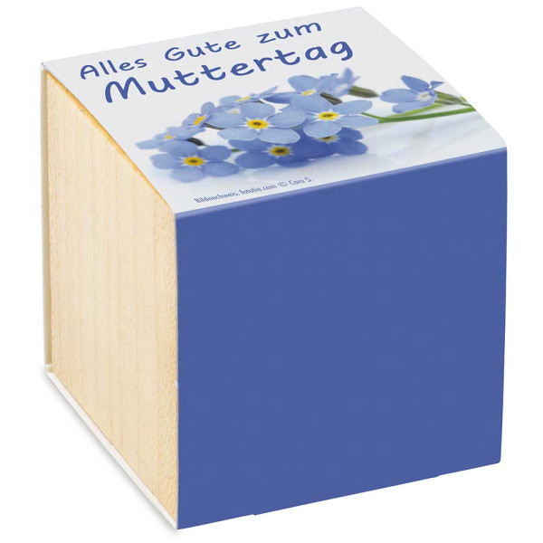 Mit sympathischer Gestaltung ab Lager in kleinen Mengen lieferbar. Keine Druckvorkosten. Der Würfel aus europäischen Holz wird mit Samen und Substrattablette geliefert.