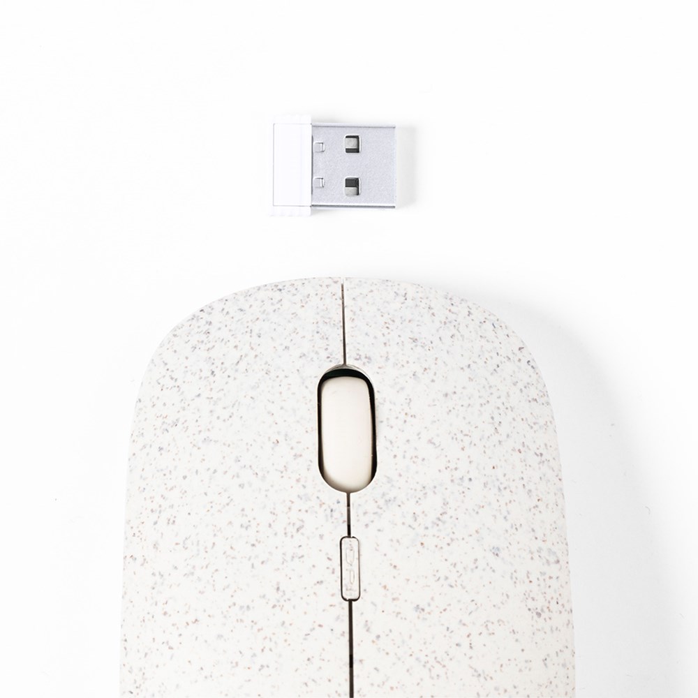 Linie "Natur", kabellose optische Maus mit ergonomischem Design. Hergestellt aus Weizenstroh, um die Verwendung natürlicher Rohstoffe zu fördern und Schadstoffemissionen zu reduzieren. Inklusive DPI-Taste und batteriebetrieben (1xAA nicht enthalten). Präsentiert in einer attraktiven Ökodesign-Box.