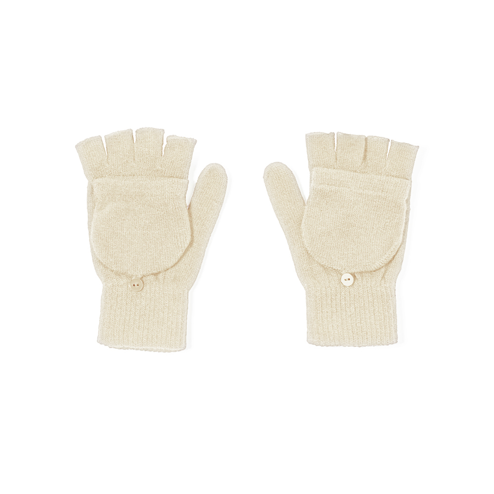 Praktisches Paar Handschuhe aus warmem, weichem Acryl. Mit Klappe, um sie in Fäustlinge zu verwandeln, ideal zum Schutz vor Kälte bei gleichzeitiger guter Beweglichkeit. Eine Erwachsenengröße. Präsentiert in einer individuellen Recycling-Tasche.