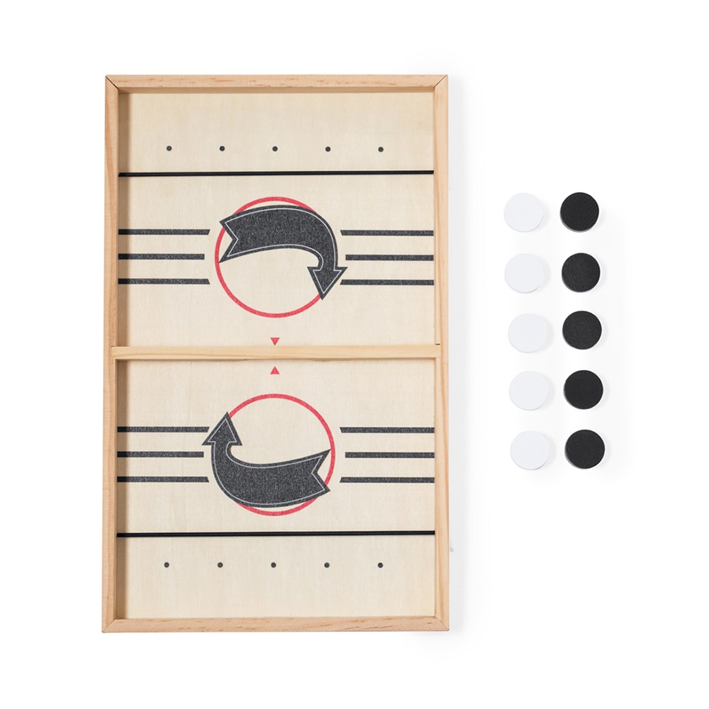 Lustiges Brettspiel aus Holz und ideal für die anspruchsvollsten Spieler. Das Spiel besteht darin, die Figuren mithilfe des Gummibandes auf das gegnerische Feld zu schleudern. Der Gewinner ist der Spieler, der die meisten Spielsteine in den Schlitz des Gegners gesteckt hat. Inklusive Spielbrett, 5 weißen und 5 schwarzen Spielsteinen. Präsentiert in einer individuellen Kraft-Designbox.