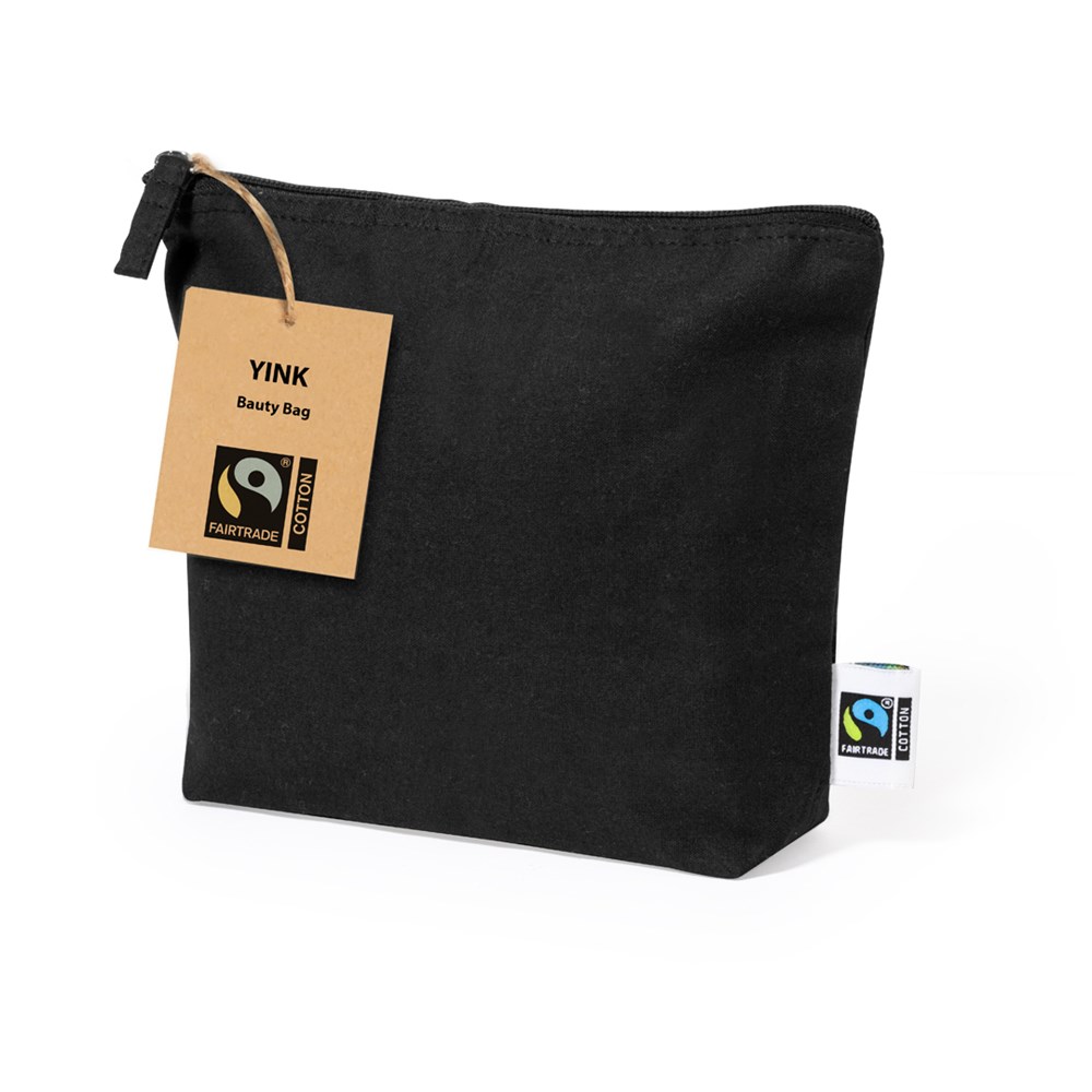 Natur Linie Kosmetiktasche aus Baumwolle, in elegantem Schwarz. Hauptfach mit Reißverschluss und passendem Henkel, inklusive Fairtrade-Label und unverwechselbarem Hangtag aus recyceltem Karton.Mit Fairtrade-Zertifizierung, einer Alternative zum konventionellen Handelssystem, die die Entwicklung der Völker und den Kampf gegen die Armut verfolgt.