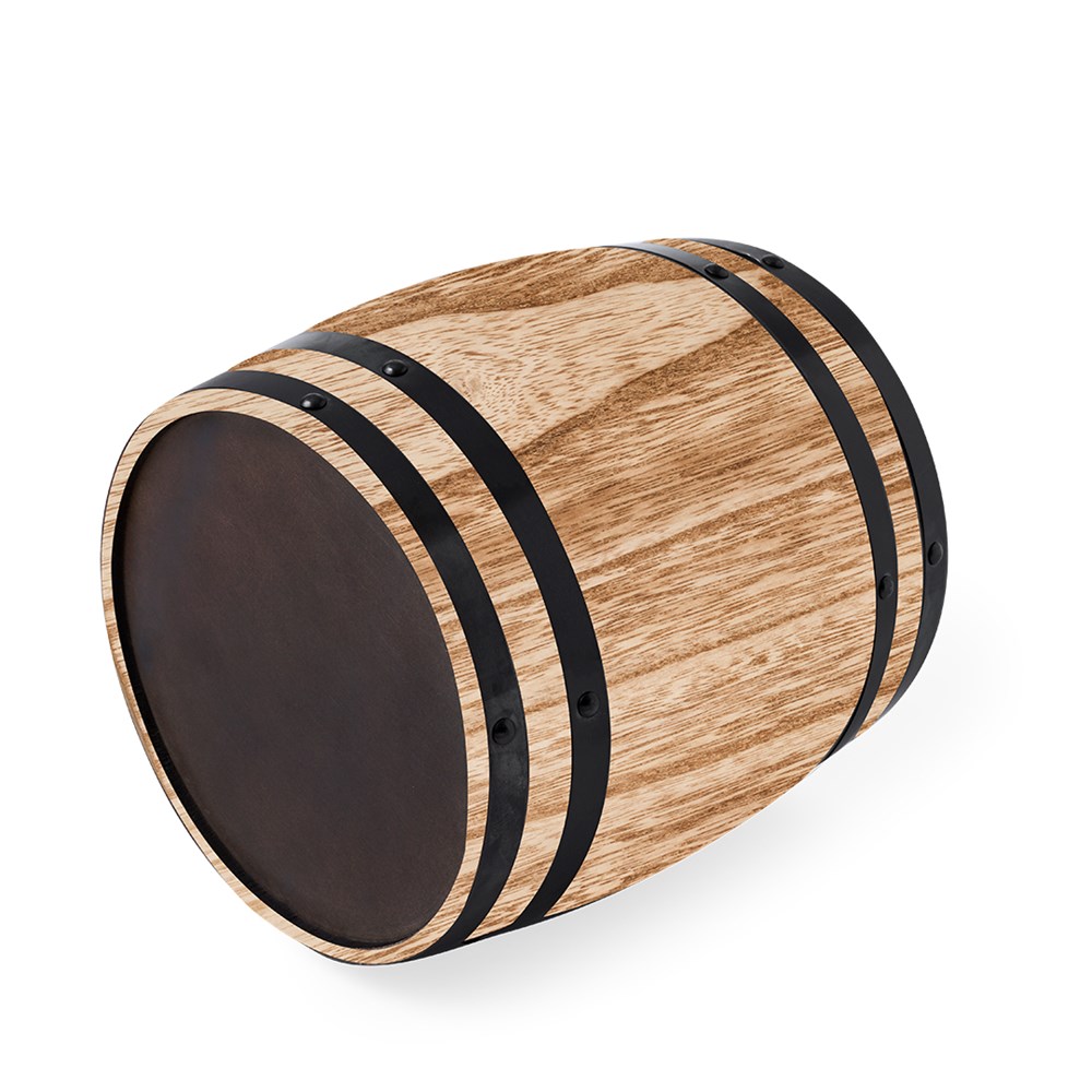Originaler Stahleimer mit Holzaußenseite. Fassform zur Aufbewahrung von Kaltgetränken oder Eis, mit doppelter Edelstahlwand und 3 l Fassungsvermögen. Einzeln präsentiert in einer Kraft-Designbox.