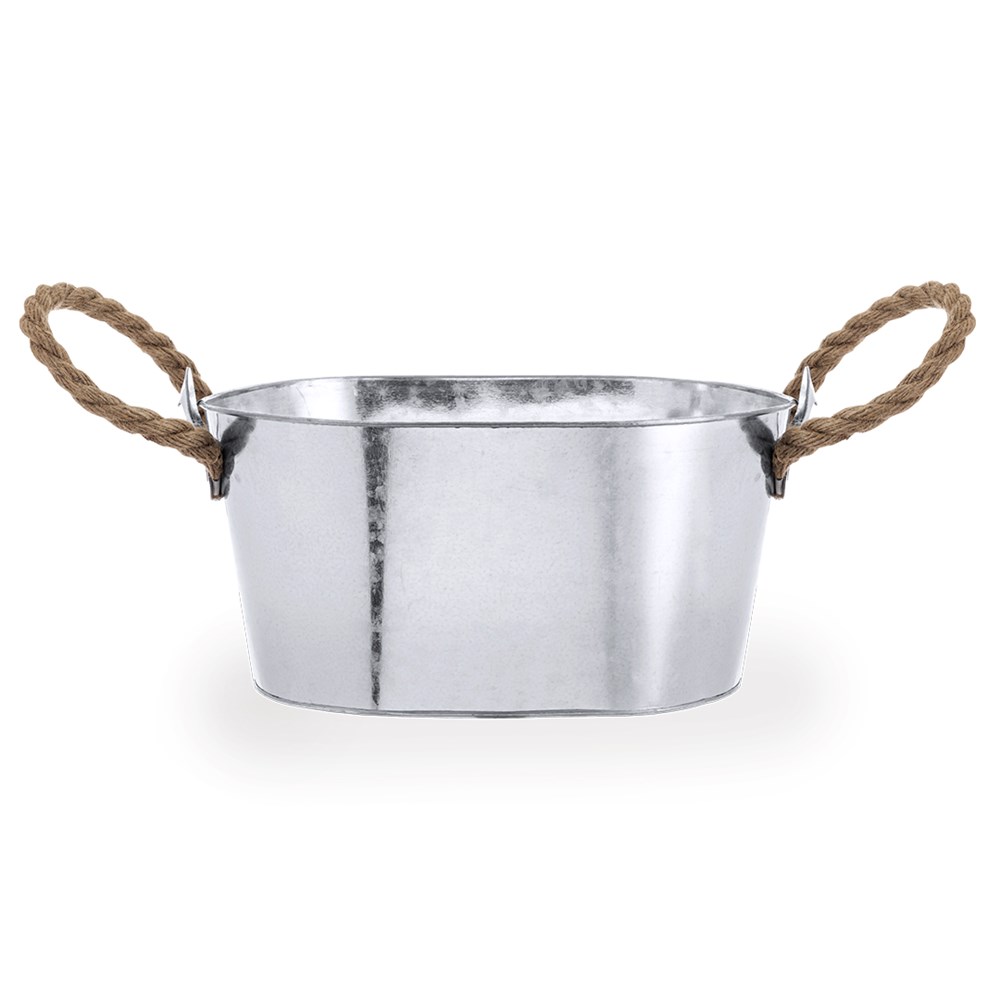 Toller Metalleimer mit 6l Fassungsvermögen zur Aufbewahrung von Kaltgetränken. Perfekte Kombination aus Stil und Funktionalität, mit festen Öffnern an beiden Enden und großem Fassungsvermögen. Robustes Design mit Seilgriffen für einfachen Transport.