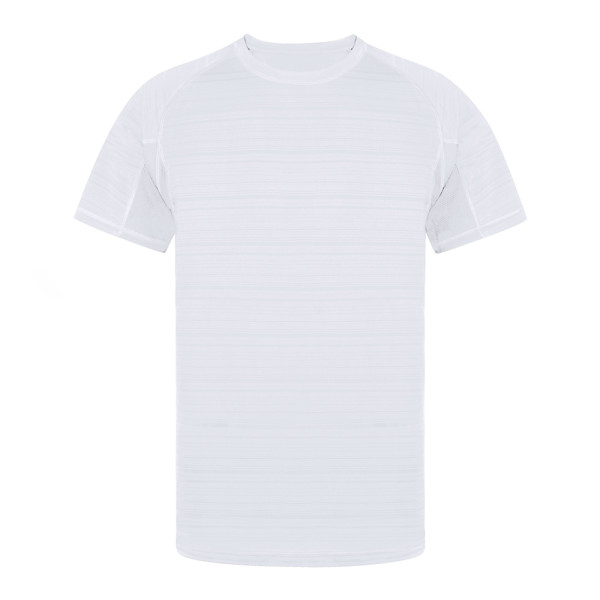 Technisches Unisex-T-Shirt mit originellem Streifendesign in Kombination mit atmungsaktivem mikroperforiertem Gewebe an Achseln und Seiten. Hergestellt aus weichem Material 100% Polyester 135g/m2, ein sehr bequemes, leichtes und atmungsaktives T-Shirt; ideal für den Sport und auch als Kleidungsstück für den täglichen Gebrauch. Moderner Schnitt, Ranglan-Ärmel und Rundhalsausschnitt, mit doppelter Naht am Saum und doppelt gewebten Ärmeln für zusätzliche Haltbarkeit und Strapazierfähigkeit. Erhältlich in den Größen XS, S, M, L, XL und XXL.