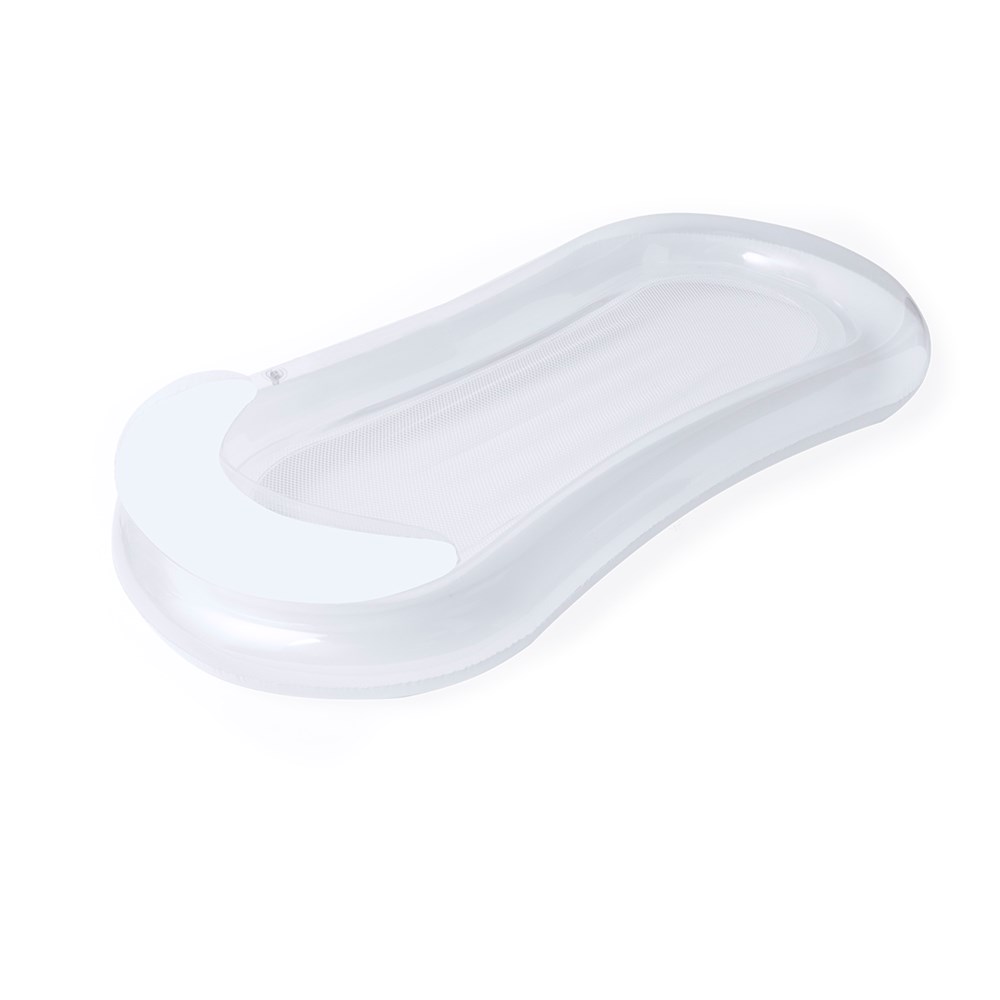 Originelles Kissen aus widerstandsfähigem PVC. Inklusive komfortablem Kopfkissen mit zweifarbigem Design in transparenten und weißen Farben. Mit starkem zentralen Netz aus weißem Polyester. Spezielle Faltung zum einfachen Bedrucken. Lieferung ohne Luft und in einem praktischen, recycelten Einzelbeutel.