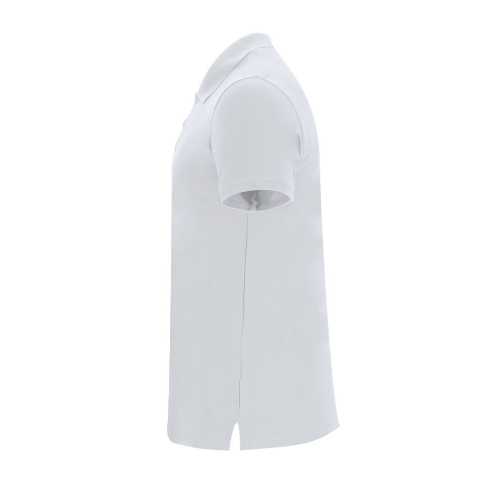 Unisex Polo mit kurzen Ärmeln aus 200 g/m2. Knopfleiste mit drei Knöpfen in matter Ausführung. Mit verstärktem Nackeninnensaum. Gerippter Saum an Ärmeln und Kragen. Seitliche Nähte mit Öffnungen am unteren Rand.