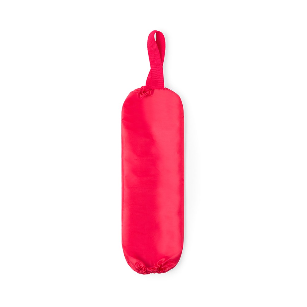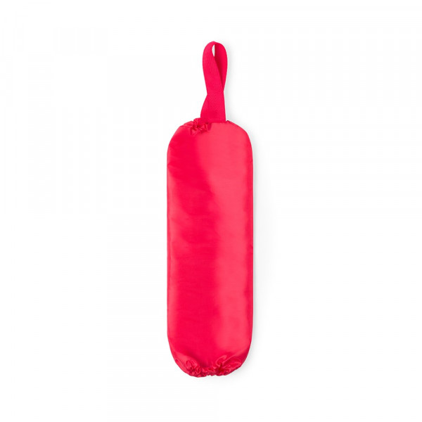 Recycling-Tasche zur Aufbewahrung von Plastiktüten. Aus weichem 210D Polyester in kräftigen Farben. Mit Öffnung an der Ober- und Unterseite und farblich passender Schlaufe zum Aufhängen.