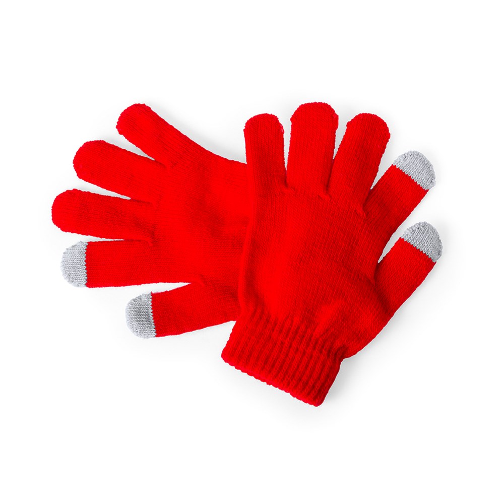 Praktische Handschuhe für Kinder, mit denen die Bedienung von Touchscreens möglich ist. Hergestellt aus warmen, weichen Acrylfasern in lebhaften Farben. Stylusmaterial an Zeigefinger und Daumen. Einheitsgröße.