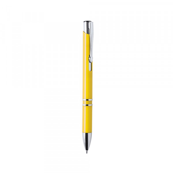 Druck-Kugelschreiber in einer Vielzahl von glänzenden Farben. Mit verchromten Kontrastdetails und originellem Design. Jumbo-Patrone mit blauer Tinte.