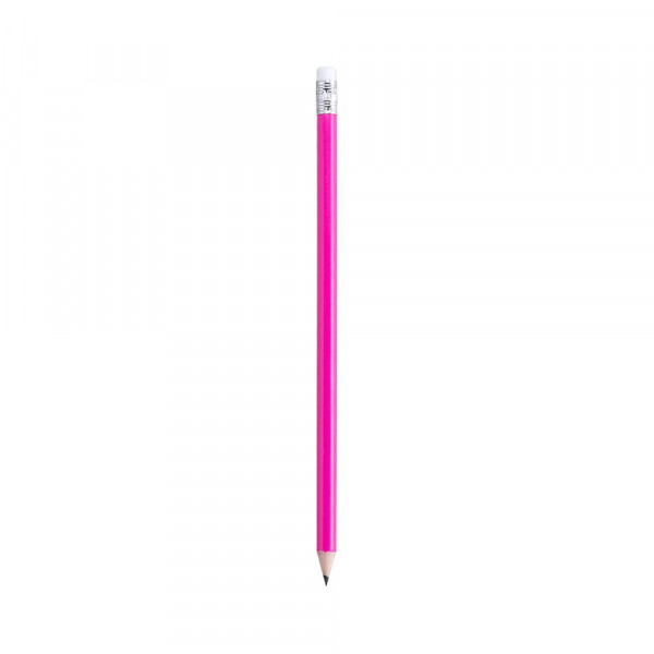 Holzstift mit glänzender Oberfläche. Mit rundem Griff und weißem Radiergummi. Erhältlich in einer Vielzahl von Farben. Schwarze Mine und scharfe Spitze.