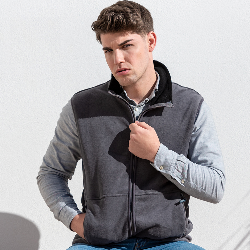 Weste aus weichem und warmem Polar-Fleece (280 g/m2) mit Anti-Pilling-Behandlung. Mit farbigem Innenkragen, Reißverschluss mit Zugband, seitlichen Reißverschlusstaschen und elastischem Bund. Erhältlich in den Größen M, L, XL und XXL.