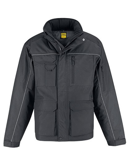 Außenschicht: 100% Ripstop-Polyester, wasserdicht (5.000 mm), windabweisend (230 g/m²) | Innenschicht: Wärmeisoliertes, dick wattiertes Futter (200 g/m²) für zusätzlichen Wärmeschutz | Hochfunktionale, schwere PRO-Jacke mit ergonomischer versteckter Kapuze | 12 Multifunktionstaschen | Längere Rückenpartie für Bewegungsfreiheit, Wärme und Schutz beim Bücken oder Knien | Reflektierende Paspelierung an Vorder- und Rückenteil für mehr Sichtbarkeit und Sicherheit | Ripstop-Außenschicht sorgt für mehr Widerstandsfähigkeit gegen Abnutzung und Verschleiß | 1 leicht zugängliche Smartphone-Tasche mit Klettverschluss außen, 3 zusätzliche Stifttaschen außen, 2 Fronttaschen mit Zweifach-Eingriff mit seitlichem Zugriff auf Fleece-Handwärmer | 1 aufgesetzte Innentasche für Brieftasche | 1 Armtasche mit Reißverschluss | Ergonomische Reißverschluss-Züge für einen leichten Zugang | Verstellbare Bündchen mit Klettverschluss für einen besseren Sitz | Stoff für alle Drucktechnologien und zum Besticken geeignet | B&C Collection ist Mitglied der Fair Wear Foundation