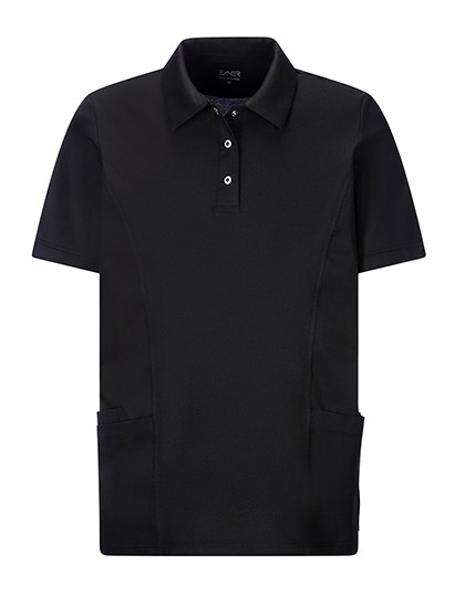 Unisex | Aus Polo-Piqué (Front und Rücken) und Mischgewebe (Ärmel, Kragen und Seiteneinsätze) | Polo-Kragen mit Druckknopf-Leiste (3 Knöpfe) | 2 aufgesetzte Taschen, 1 zusätzliche Einstecktasche | Seitenschlitze (L= 10cm) | Rückenlänge bei Gr. M: 75 cm